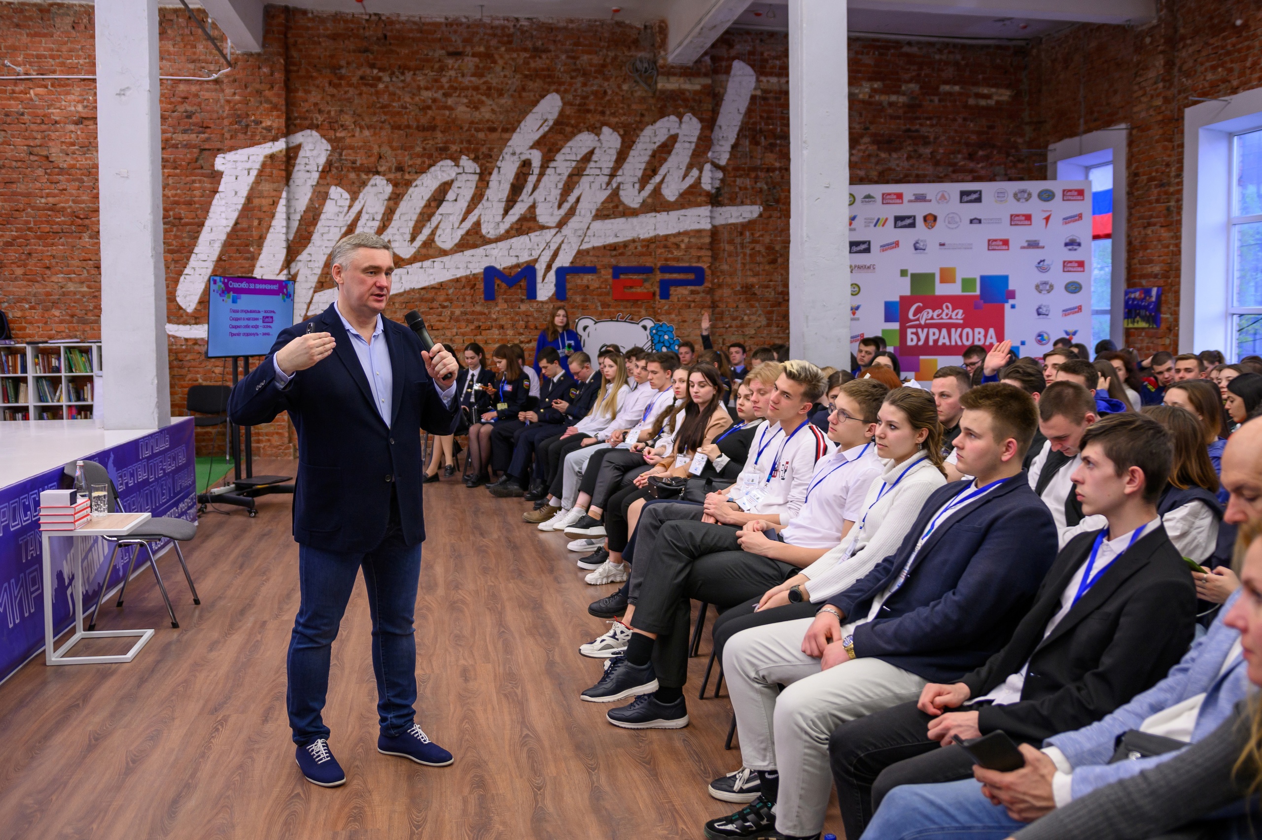 Первая встреча участников проекта «Среда Буракова» на тему «О правде» , состоялась в молодежном пространстве ДК «Правда!» , собрав максимально возможное для этого зала количество участников - свыше 200 студентов, активистов молодёжных объединений.