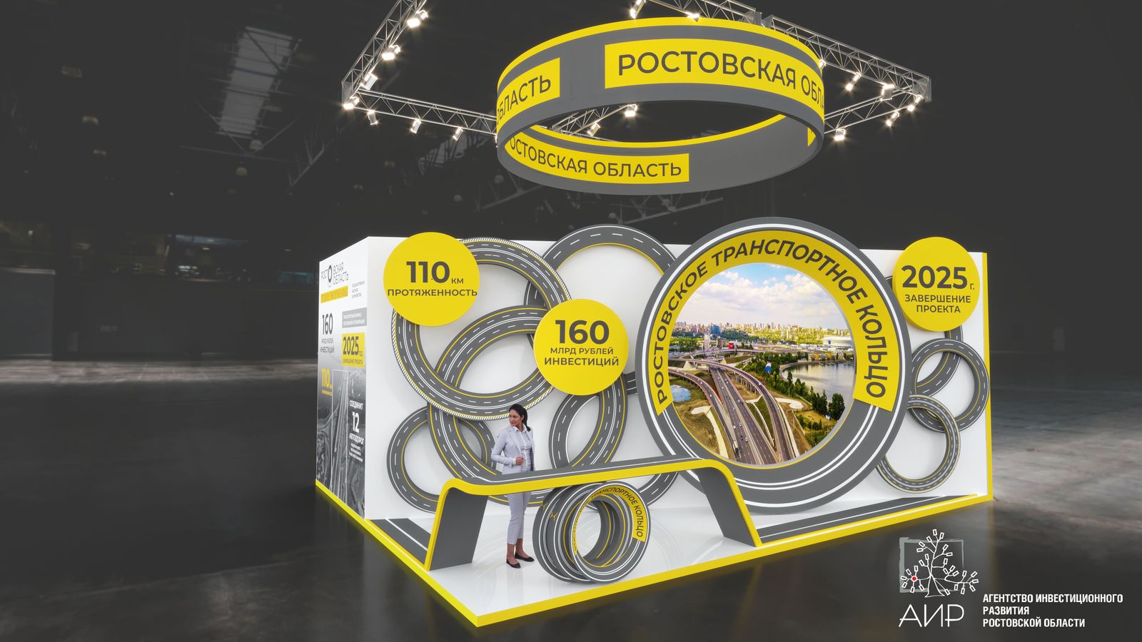 «Экспозиция обыгрывают тему «транспортного кольца», презентует проект строительства кольцевой автодороги, который, в свою очередь, складывается из целого ряда проектов, открывает новые инвестиционные возможности, - комментирует генеральный директор «Агентства инвестиционного развития Ростовской области» Игорь Бураков . - Ростовское транспортное кольцо – транспортный каркас и важнейший инструмент сборки Ростовской агломерации с населением свыше 2,4 миллиона человек. Через призму транспортных проектов мы смотрим, в том числе, на развитие территорий Ростовской агломерации , транспортного сообщения с новыми российскими регионами».