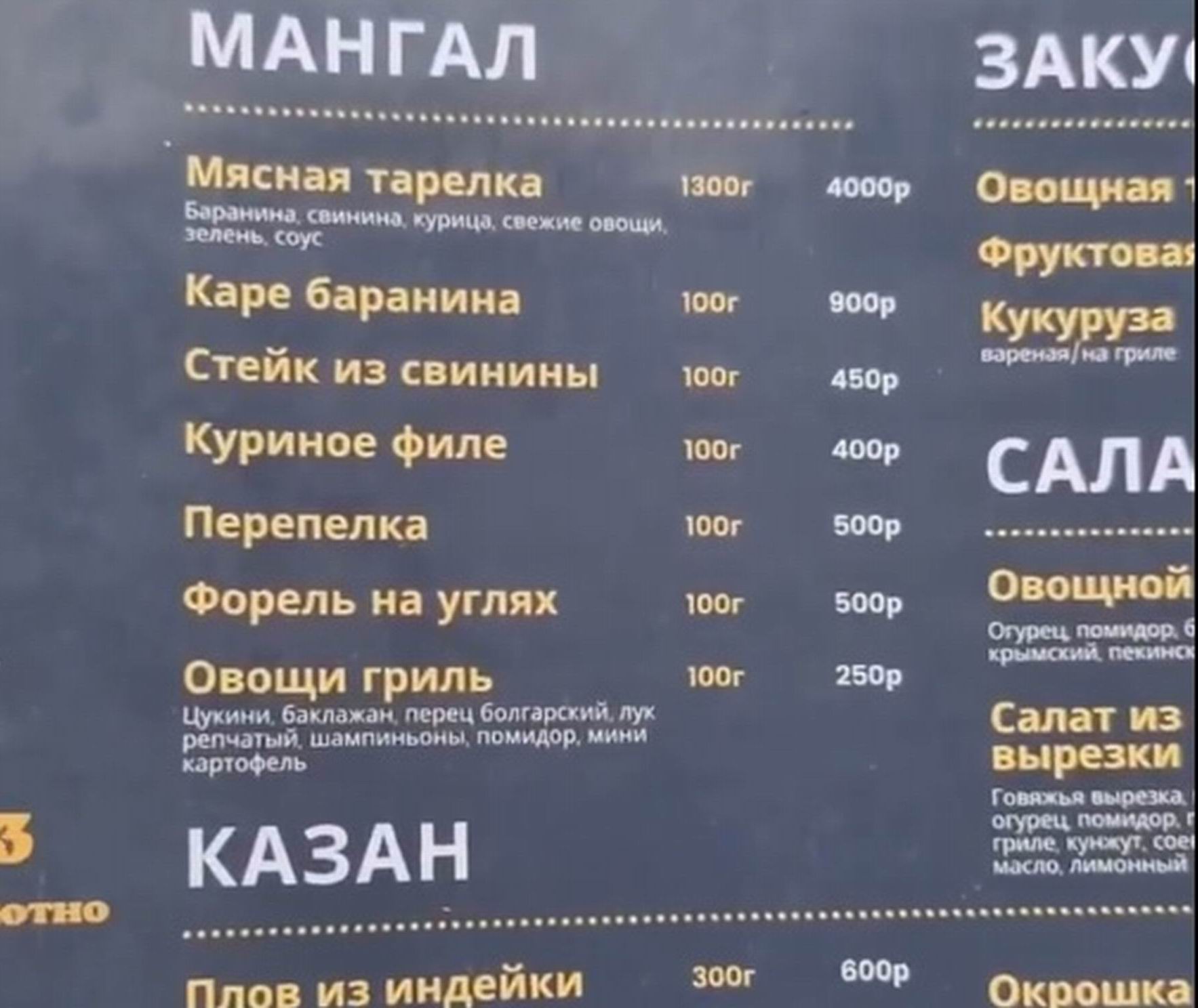 Всё понятно: логистика, инвестиции в строительство на значительном удалении от города, но шашлык по 9 тысяч рублей за кило!