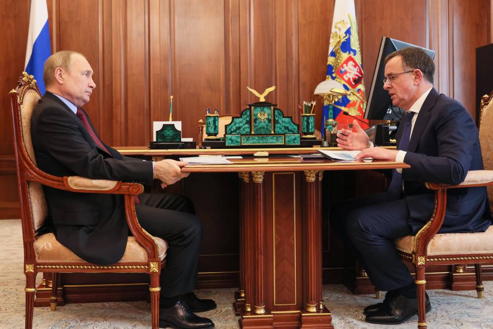 Владимир Путин обсудил с Дмитрием Сергеевым работу компании внутри страны и за рубежом. / фото: Михаил Климентьев / Пресс-служба президента РФ / ТАСС
