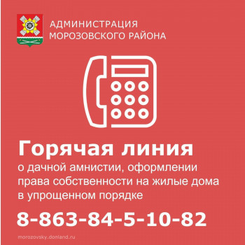 22 июня с 10.00 до 11.00 часов Наталья Коваленко, главный архитектор Администрации Морозовского района, ответит на вопросы жителей о дачной амнистии, оформлении права собственности на жилые дома в упрощенном порядке.