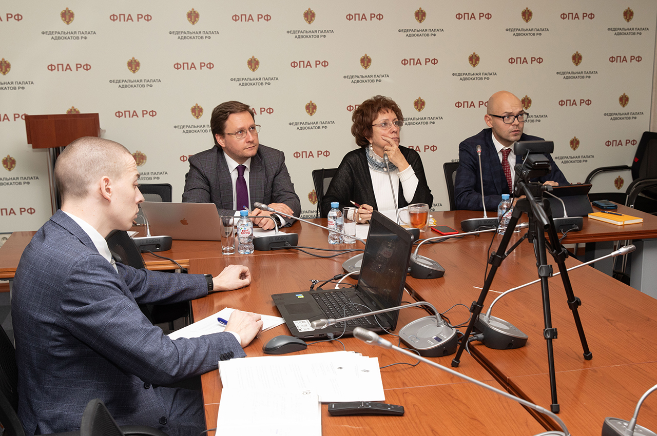 В зале заседаний Совета ФПА РФ находились председатель КЭС – президент ФПА РФ Светлана Володина, заместители председателя Комиссии – советники ФПА РФ Александр Орлов и Василий Раудин.
