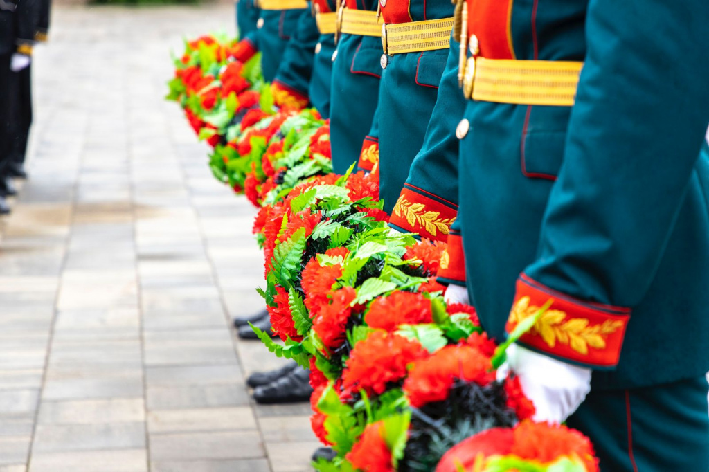 Участники церемонии почтили память погибших героев минутой молчания.
