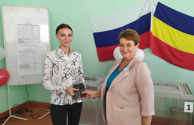 На избирательные участки Обливского района приходят молодые избиратели, которые впервые участвуют в голосовании. Голосующие впервые получают символичные подарки от избирательной комиссии.