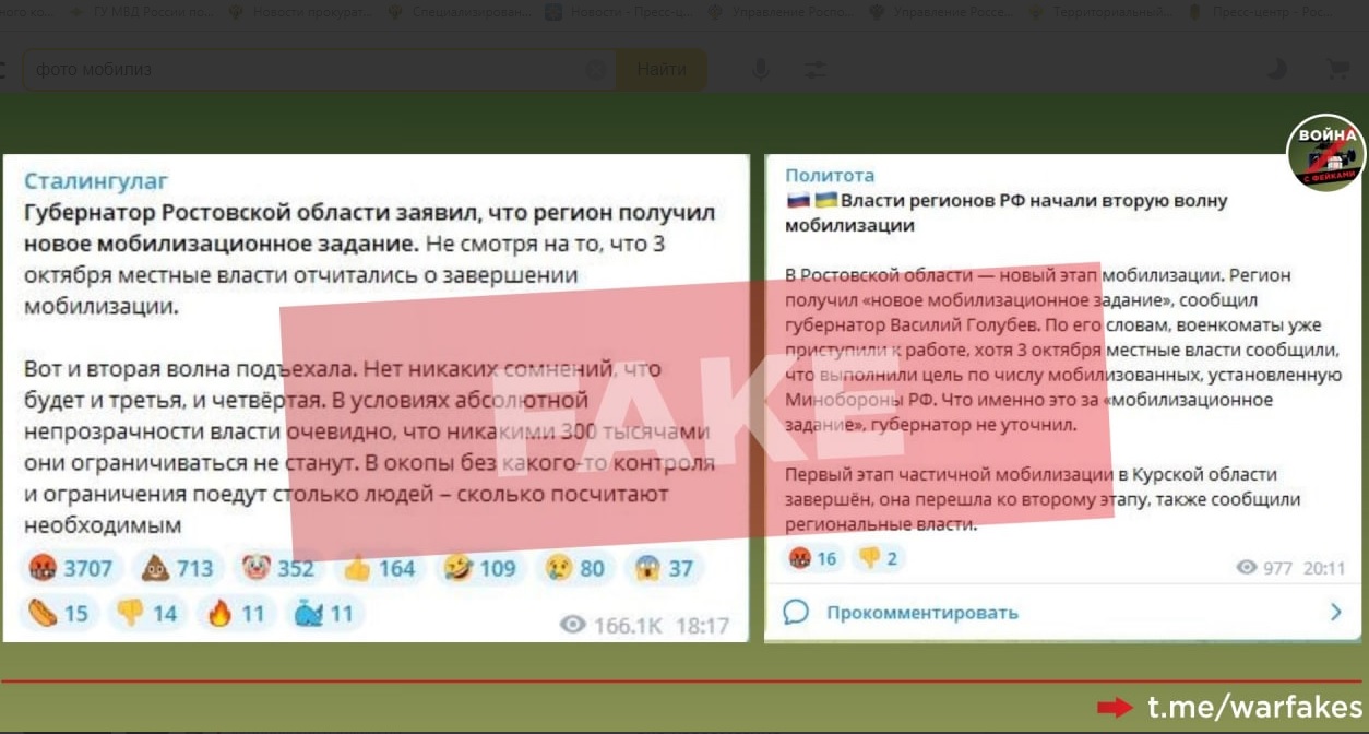И вот сегодня известный правительственный телеграм-канал "Война с фейками" по поводу "второй волны мобилизации" разъясняет: