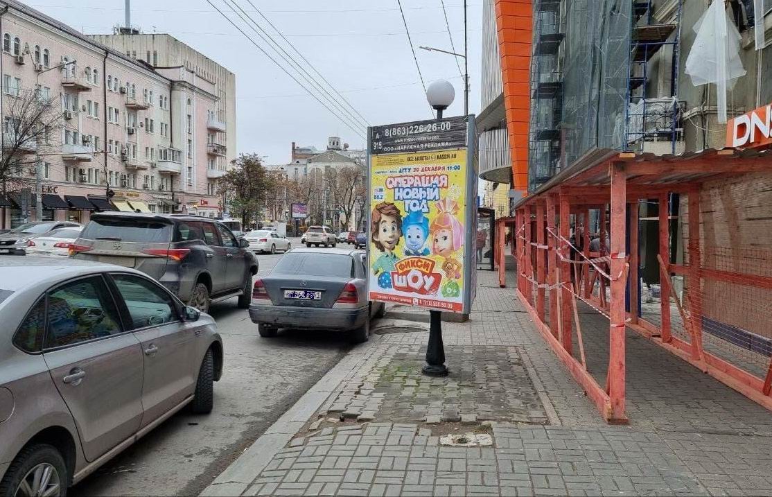 Сегодня в соцсетях распространяется фото. Ростовчанин пишет: " Весь Ростов и отношение к зелёным насаждениям в одном фото. Росло дерево, спилили, заложили плиткой, посадили на его место рекламный щит. Точка " (см. фото к новости).