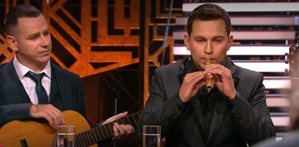 На программу артисты из ансамбля песни и пляски «Донское сияние» приехали не с пустыми руками. Андрей Щебуняев подарил Андрею Малахову свою флейту.