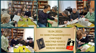 18.04.2022 г., во внестационарном секторе библиотеки им. М. Шолохова состоялся мастер-класс «Дарим книге новую жизнь».