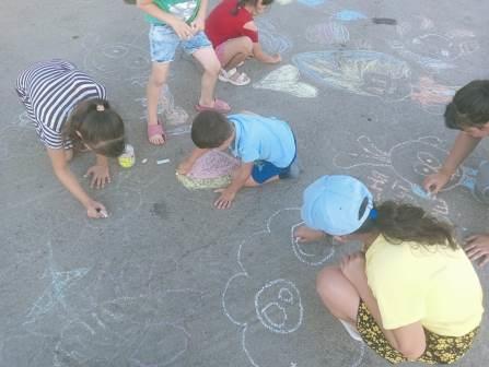 Далее вооружившись разноцветными мелками, ребята почувствовали себя настоящими художниками. Асфальт - это большое полотно для бесконечного детского творчества. Рисовать цветными мелками, да еще не на бумаге, а на асфальте - это счастье для детей. Ребята нарисовали своих любимых героев из сказок, мультфильмов. Все работы были очень яркие, интересные. Праздник завершился очень эмоционально. Все начали рассматривать получившиеся рисунки, делились своими впечатлениями.
