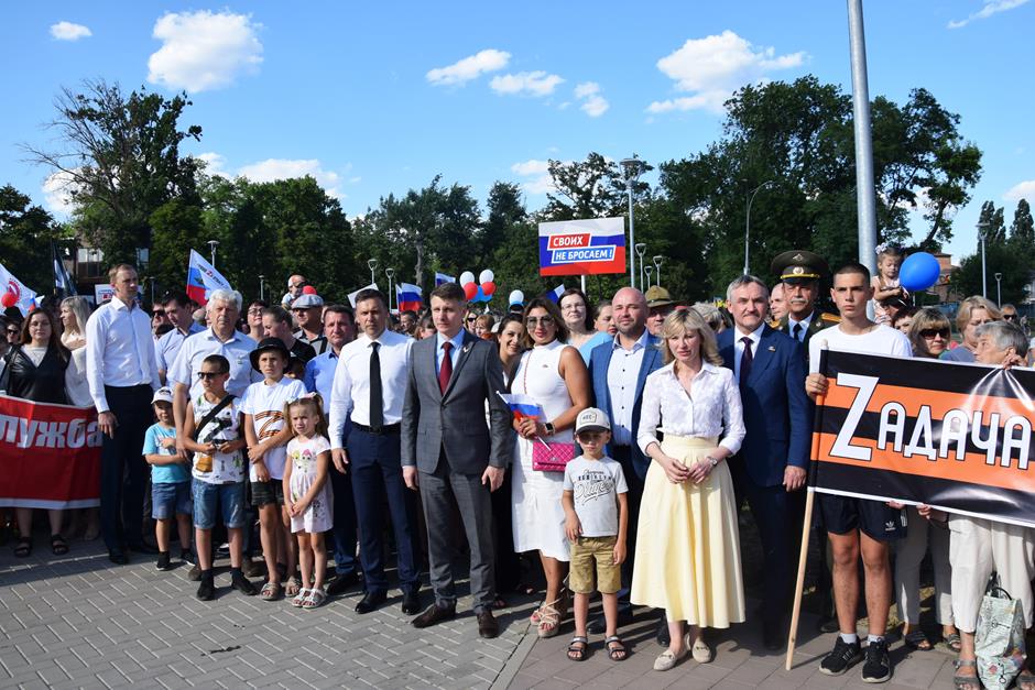 Сегодня в Александровском парке состоялась акция в поддержку специальной военной операции Вооруженных сил России по защите ДНР и ЛНР. Она собрала в Александровском парке жителей разных поколений: от мала до велика. В гражданско-патриотическом мероприятии приняли участие депутат Государственной Думы России Екатерина Стенякина, председатель городской Думы – глава города Шахты Андрей Горцевской, глава Администрации Андрей Ковалев, председатель Контрольно-счетной палаты Галина Аверкина депутаты городской Думы Константин Чередниченко, Роман Измайлов, Вадим Новоселов, Виктор Яровой. Присоединился к шахтинцам в этот день олимпийский чемпион по легкой атлетике, прославленный земляк Андрей Сильнов. Выступили перед собравшимися также руководитель казачьего общества «Александровск-Грушевское» Дмитрий Суворов, руководитель патриотического объединения «Пост№1» Юрий Кузнецов, старший начальник смены Акционерного Общества Шахтоуправление «Обуховская» Петр Валерьевич Харченко.