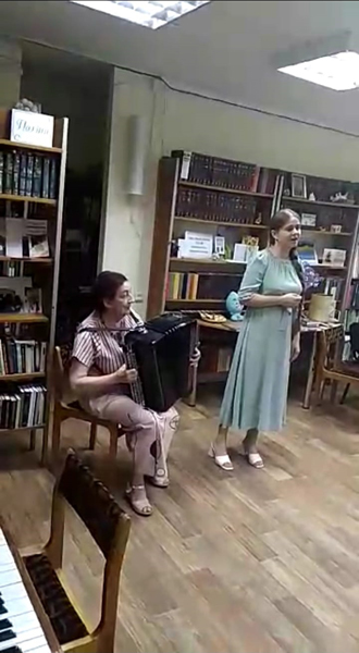 Библиотека располагает фортепиано, и концертная программа прозвучала в «живом» сопровождении руководителя хора трех поколений Н.Ф. Помазкиной и концертмейстера Л.А. Буряковой.