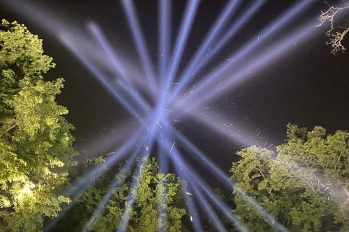 Впервые прожекторы осветили ночное небо над Москвой 24 июня 1945 года в 23:00: вокруг Кремля, по кольцам Бульварному и Садовому, по вокзалам и по Окружной железной дороге.