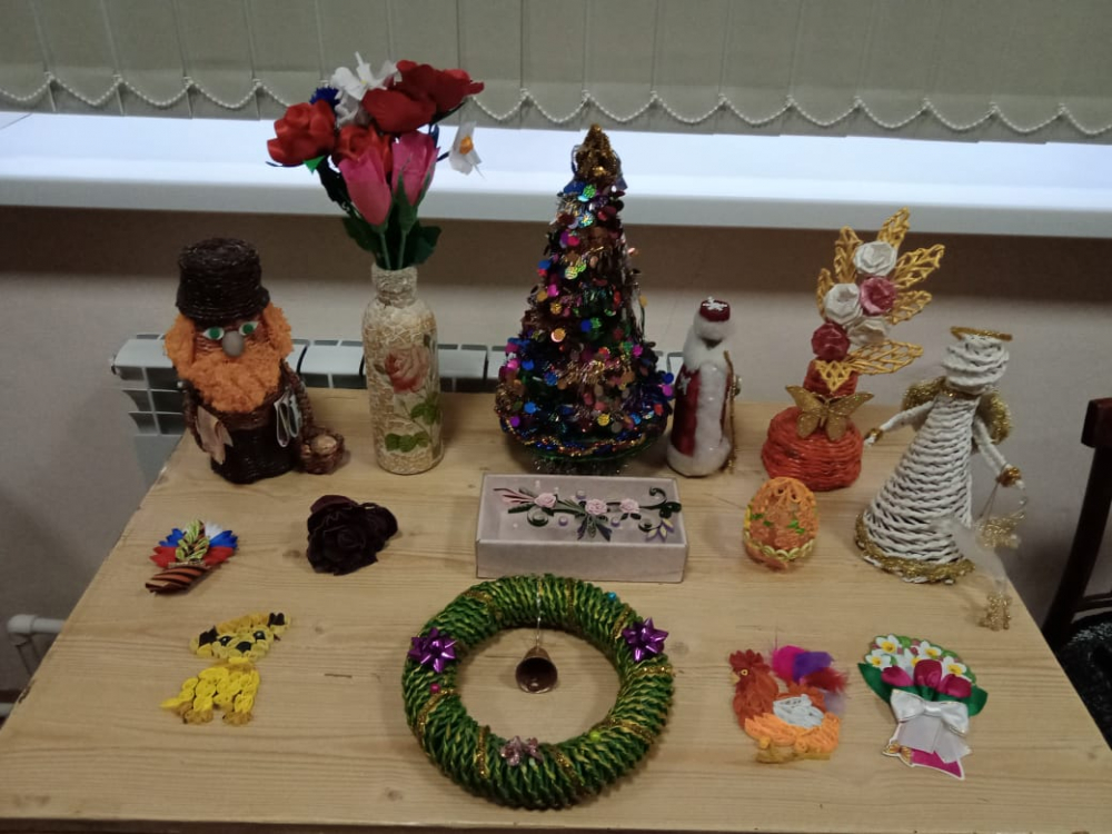 На выставке вы увидите живописные и вышитые картины, картины из рыбьих костей, шерстяную акварель, фотографии, интерьерные подсвечники, изделия, связанные крючком и спицами, а также работы, выполненные из теста, бумажных трубочек, ткани, атласных лент и многое другое.