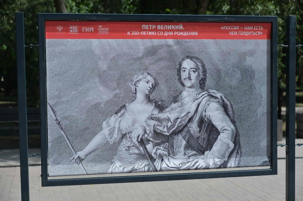 Экспонаты – информационные панели - выставлены в центре парка Победы. Выставка организована Государственным музейно-выставочным центром "РОСИЗО" при участии московского Государственного Исторического музея и посвящена 350-летие со дня рождения первого русского императора.