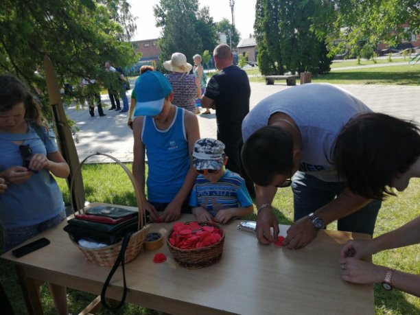 Всем желающим было предложено изготовить объемный цветок и украсить сарафан матрёшки.