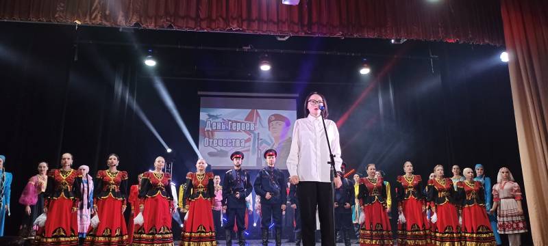 Для гостей выступили народные коллективы, а темой песен и танцев была «Любовь к родине, гордость за свою отчизну». С Днем Героев Отечества гостей поздравил коллектив муниципального ансамбля песни и пляски «Надежда», выступивший со знаменитым танцем «Калинка», а также исполнивший самые душевные и памятные казачьи песни. Авторское стихотворение прочел шахтинский поэт Владимир Селецкий. Строки своего произведения он посвятил гордости за русский народ и любви к России. На сцене Городского Дворца культуры гостей поздравляли с праздником и самые юные танцоры. Дети – будущее нашей страны и этот концерт очень хорошо показал единение русского народа, его общую гордость за нашу страну.
