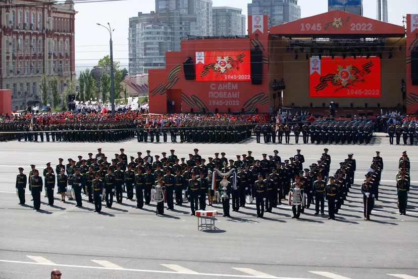 Празднование Великой Победы в Ростове-на-Дону началось на Театральной площади Военным Парадом.