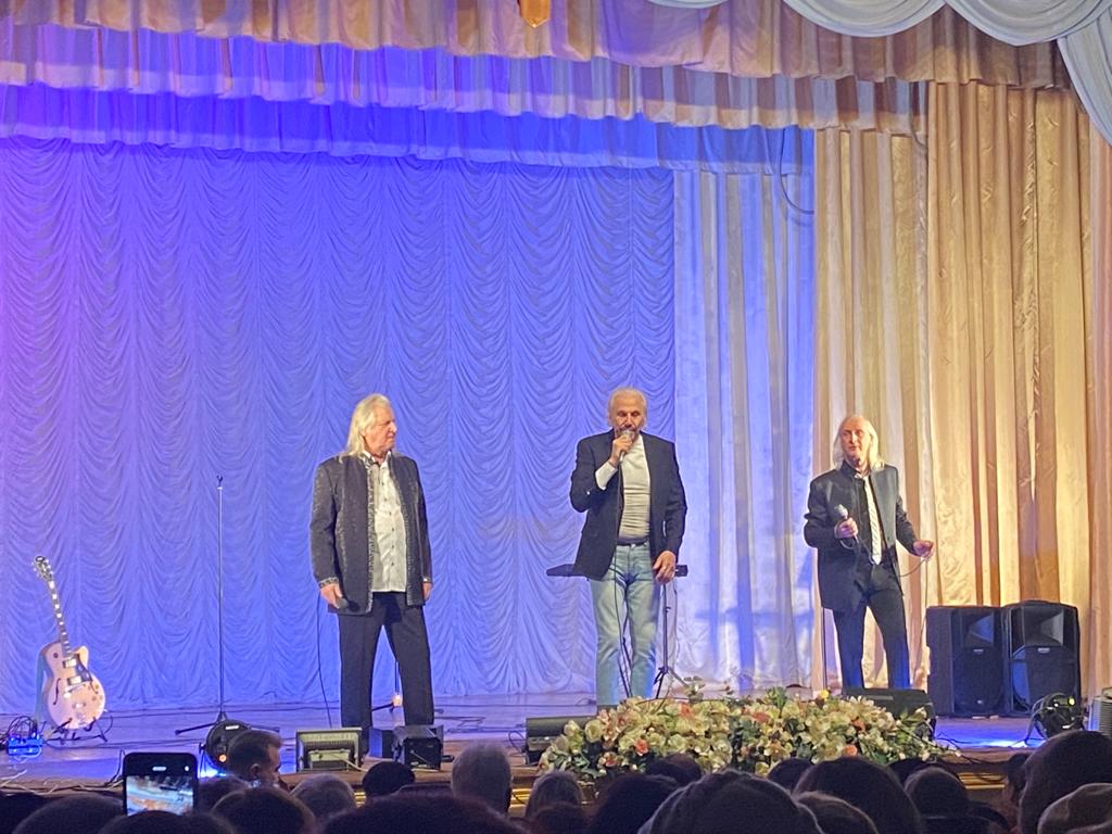 Экс-солисты известных групп "Синяя птица" – ВЛАДИМИР ПРЕОБРАЖЕНСКИЙ, "Весёлые ребята" – АНАТОЛИЙ АЛЕШИН и "Песняры" – МИХАИЛ ДОЛОТОВ вернули каменчан во времена советского прошлого ровно на 2 часа.