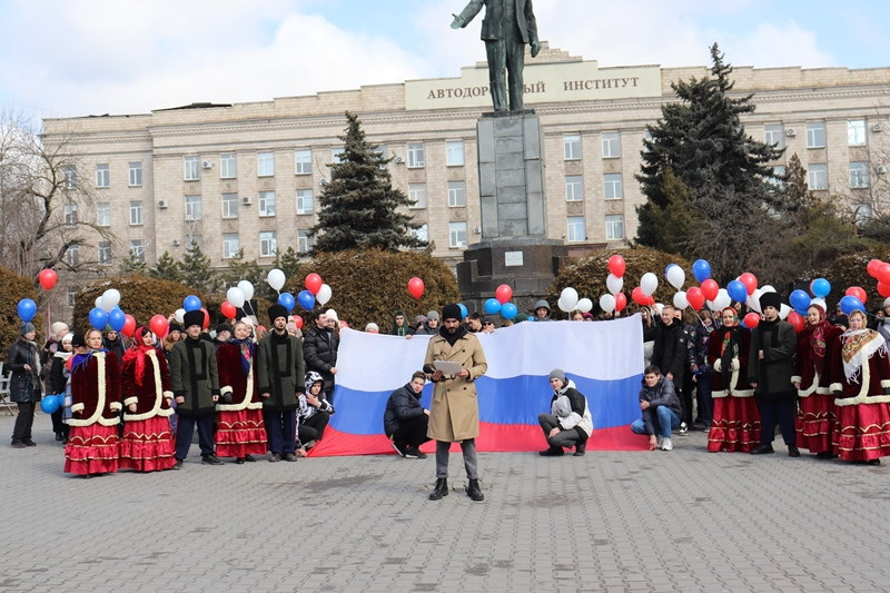 Традиционно 18 марта во всех городах России и Крыма проводятся торжественные мероприятия с народными гуляньями, концертами, флэш-мобами, соревнованиями. Донская земля, богатая своим историческим наследием, традициями и творческим подходом к событиям мирового масштаба, сегодня ярко и красочно отмечает этот праздник.