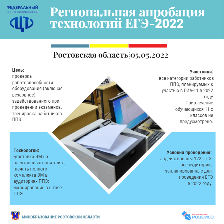 В ходе апробации были задействованы все аудитории и вся техника, которую предстоит использовать на экзаменах. Более 100 специалистов, привлекаемых к проведению ЕГЭ, смогли на практике отработать все его этапы.