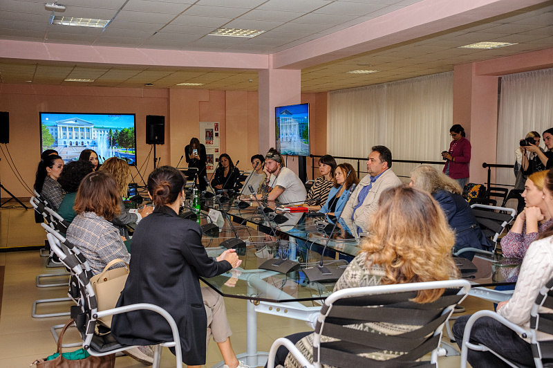 В конгресс-холле 28 сентября состоялся круглый стол коллектива кафедры «Креативные индустрии» ДГТУ с участием завкафедрой, руководителя театра-студии «Браво-ДГТУ», Народной артистки России Аниты Цой.