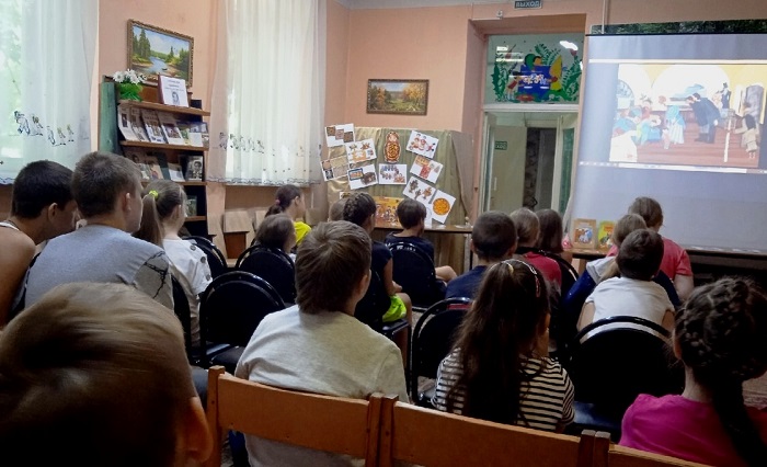 В Центральную городскую детскую библиотеку им. Н. К. Крупской на фольклорный праздник «В гостях у матрёшки» пришли ребята из пришкольного летнего оздоровительного лагеря школы №38.