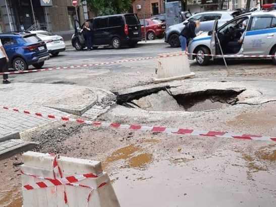 Гигантская яма в дороге появилась на пересечении переулка Университетского и улицы Суворова. Глядя на фото из соцсетей, диаментр дыры составляет несколько метров. Чудом поблизости в момент ЧП никого не оказалось — иначе перелома или тяжелой травмы было бы не избежать.