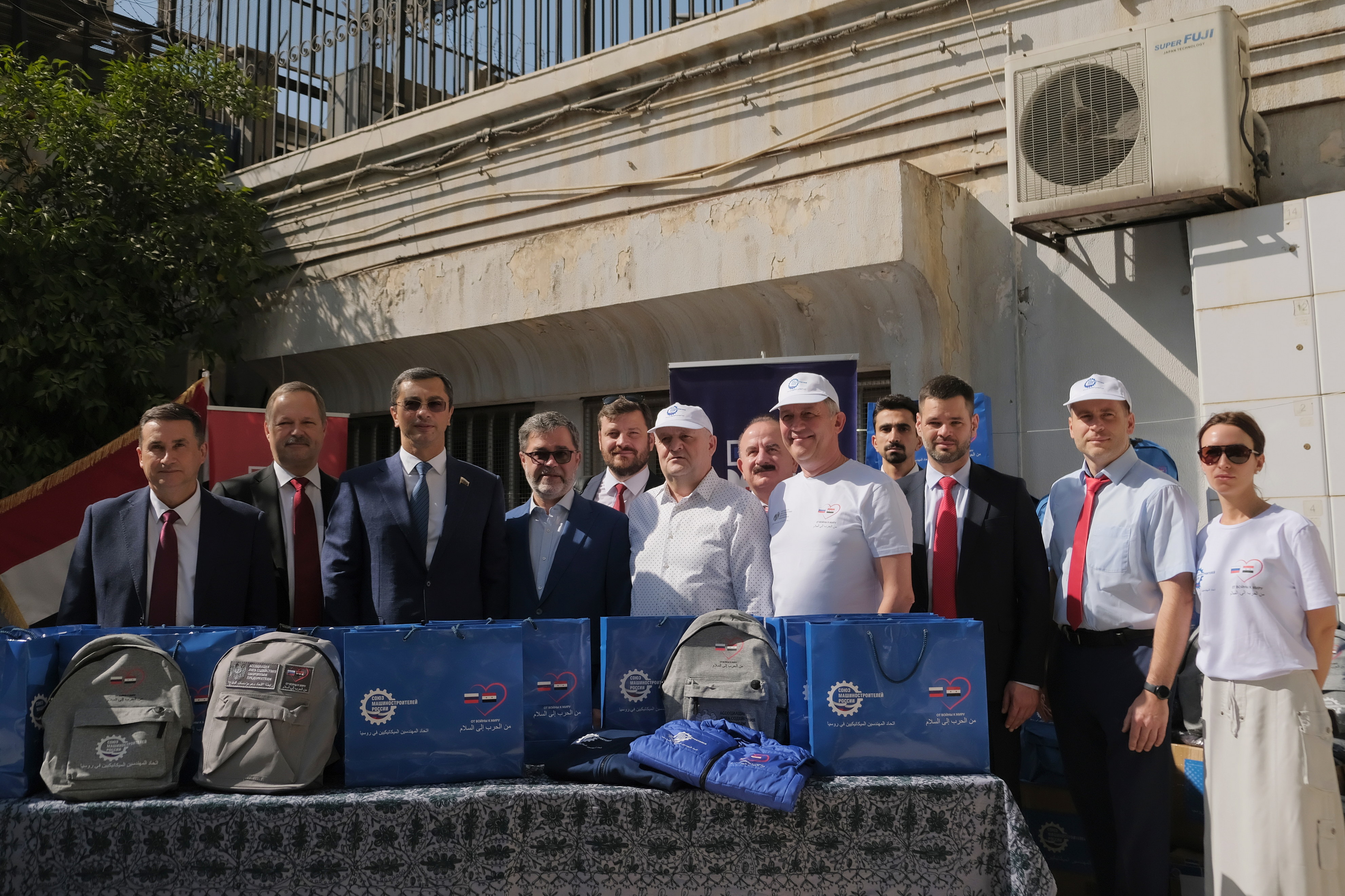 Визит начался с посещения Российского центра науки и культуры «Русский дом» в Дамаске. Участники делегации пообщались с местными жителями и подопечными Ассоциации по борьбе с синдромом Дауна «Джузур», Владимир Гутенев и Юрий Разоренов передали им 100 комплектов помощи, собранной усилиями ЮРГПУ (НПИ) и компании «Воентелеком», входящих в СоюзМаш России.