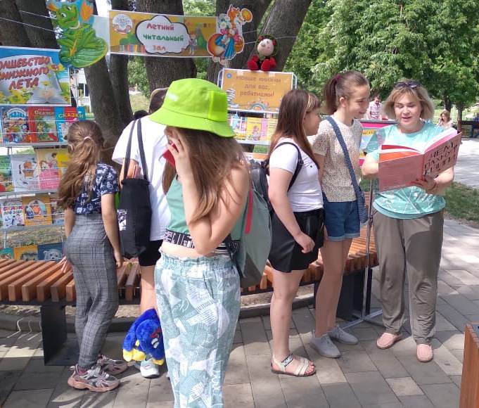 Развлекательную программу для юных гостей подготовила и наша Егорлыкская детская библиотека. В «Летнем читальном зале» была оформлена красочная книжная выставка «Волшебство книжного лета» и «Новые книжки, для вас ребятишки!», с новыми книгами и яркими книгами сказок, сказочными героями. Вернисаж «Я рисую лето» привлекал юных читателей и гостей праздника, а викторина по сказкам «Сказки всем на удивленье» иногда заставляла ребят обращаться к выставке, чтобы вспомнить сказку или ее героя.