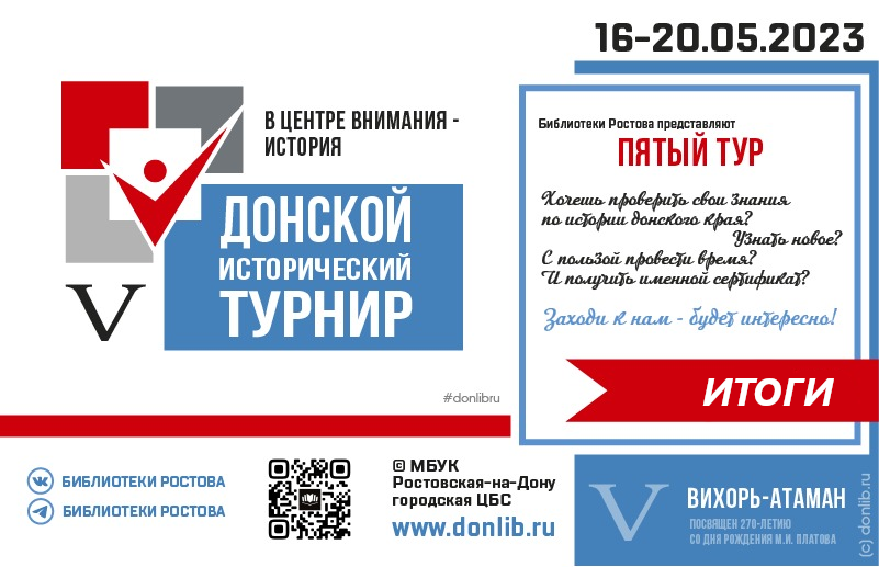 Ждём вас на следующем VI туре Донского исторического турнира. Чтобы не пропустить его, следите за новостями на сайте Библиотек Ростова .