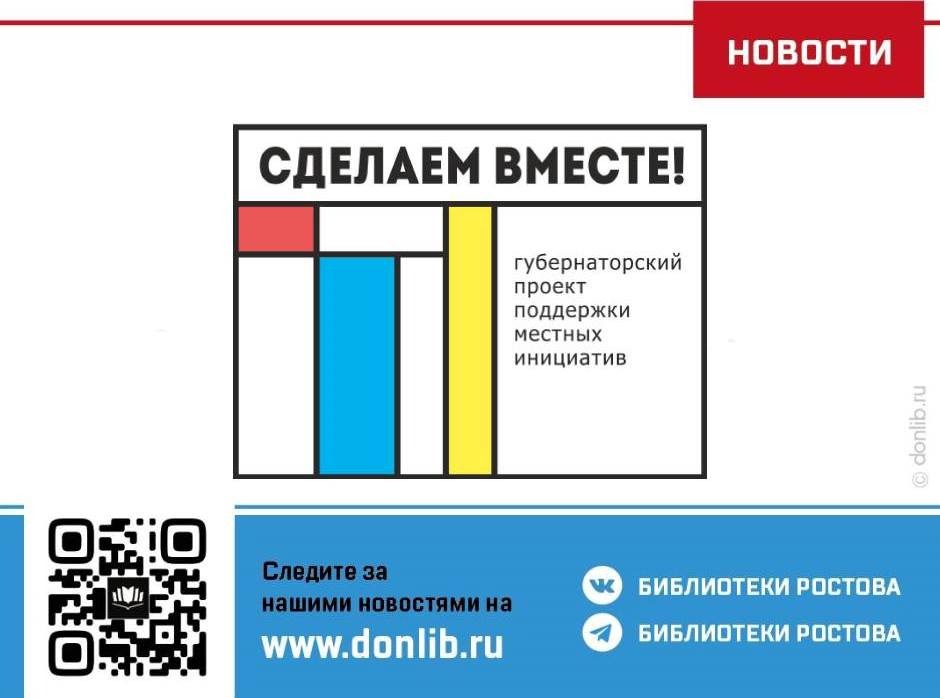 11 июля 2022 года в 11:00 состоится собрание по выдвижению проекта «Приобретение интерактивных панелей, ноутбуков, МФУ, сетевого хранилища, точек доступа Wi-Fi, коммутатора, источника бесперебойного питания, программного обеспечения, кулеров, микрофонов, системы для видеоконференций, громкоговорителя, звукового оборудования, осветителей, фона складного, планшетов, вешалок, столов, стульев, стеллажей, кресла, диванов, стойки, шкафов для креативного пространства «Арт Горького» Центральной городской библиотеки имени М. Горького Муниципального бюджетного учреждения культуры Ростовская-на-Дону городская централизованная библиотечная система по адресу: г. Ростов-на-Дону, улица Б. Садовая, д. 11» на конкурсный отбор инициативных проектов 2022 года, в рамках реализации губернаторского проекта «СДЕЛАЕМ ВМЕСТЕ!».