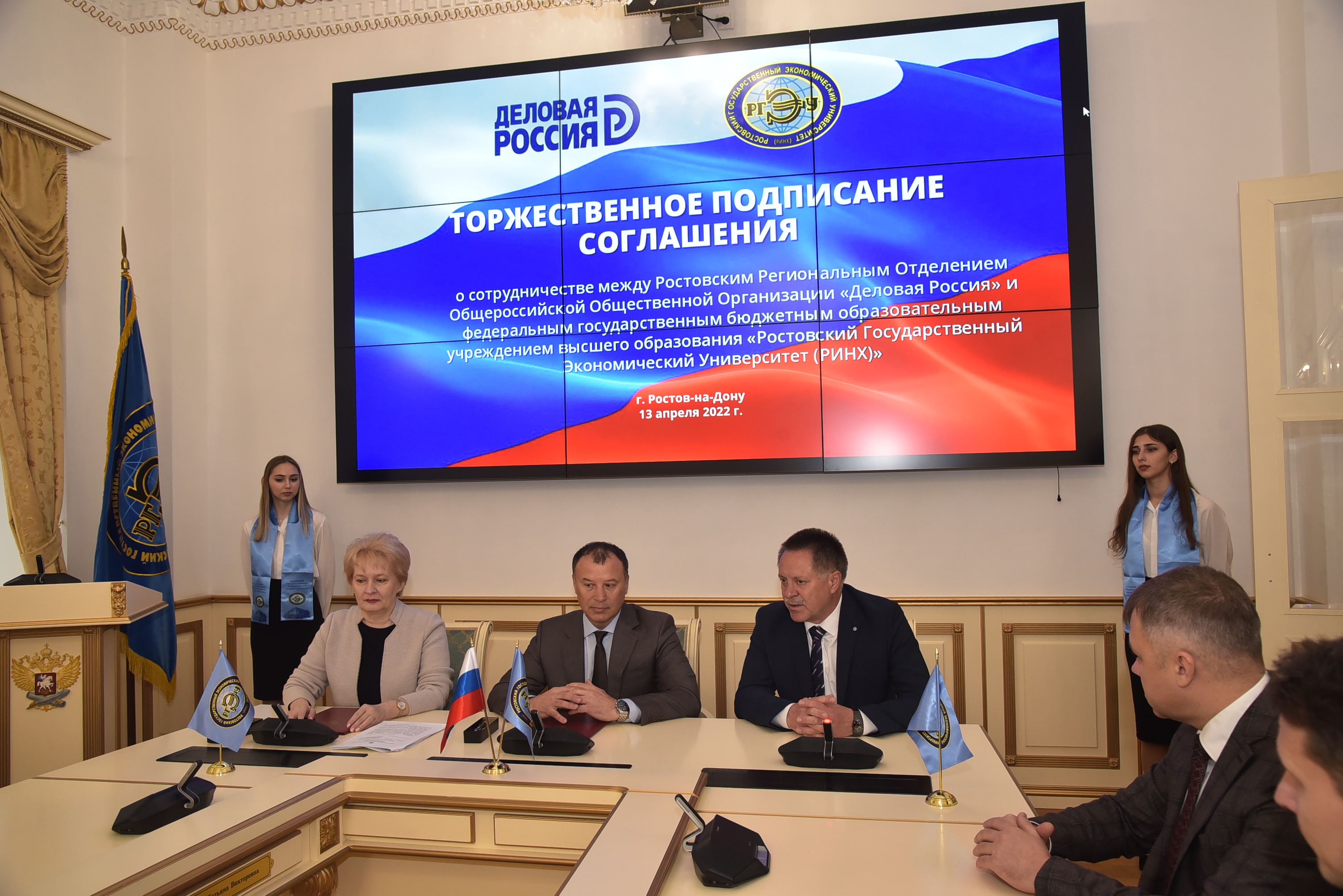 Ростовский государственный экономический университет (РИНХ) и Ростовское Региональное Отделение Общероссийской Общественной Организации «Деловая Россия» заключили соглашение о сотрудничестве.