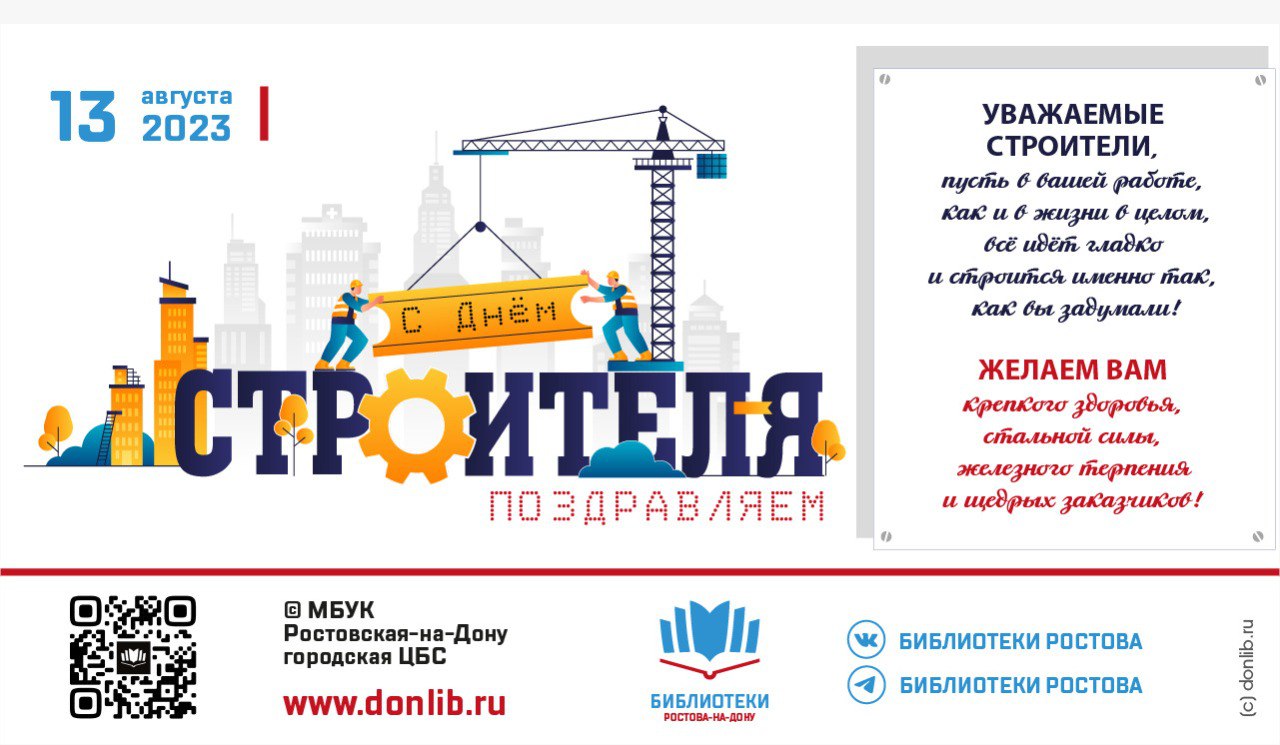 Библиотеки Ростова поздравляют всех строителей с профессиональным праздником!