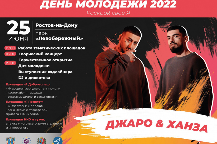 На площадке Дня молодежи выступят популярные хип-хоп исполнители Джаро&Ханза. Молодые дончане выбрали эту группу в голосовании, которое проходило в социальной сети «ВКонтакте» на официальной странице комитета по молодежной политике Ростовской области.