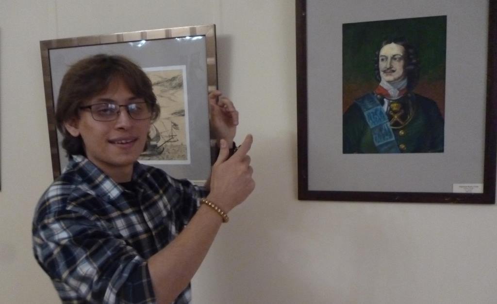 Как отметил доцент Смолин, в связи тем, что теперь учителей рисования в институте готовят по сдвоенному профилю («Дошкольное образование» и «Изобразительное искусство»), собственно изобразительному искусству уделяется меньше часов, а, например, копирование вообще не преподается. Тем не менее, некоторые студенты представили работы профессионального уровня. Четверокурсница Светлана Светлицкая нарисовала (карандашом) молодого Петра. Пятикурсник Илья Коробкин, основываясь на двух известных портретах Петра, написал императора маслом. У пятикурсницы Инны Супрун, словно живые, и сам Петр, и адмирал Крюйс, и Елизавета Петровна. Выпускница Валентина Лукьянова создала серию графических работ – целую галерею портретов представителей рода Алфераки, которая передана в дар Таганрогскому музею-заповеднику. А участница всероссийских и международных выставок пятикурсница Ксения Осадчая представила сразу три различных портрета Петра, выполненные в разных техниках.