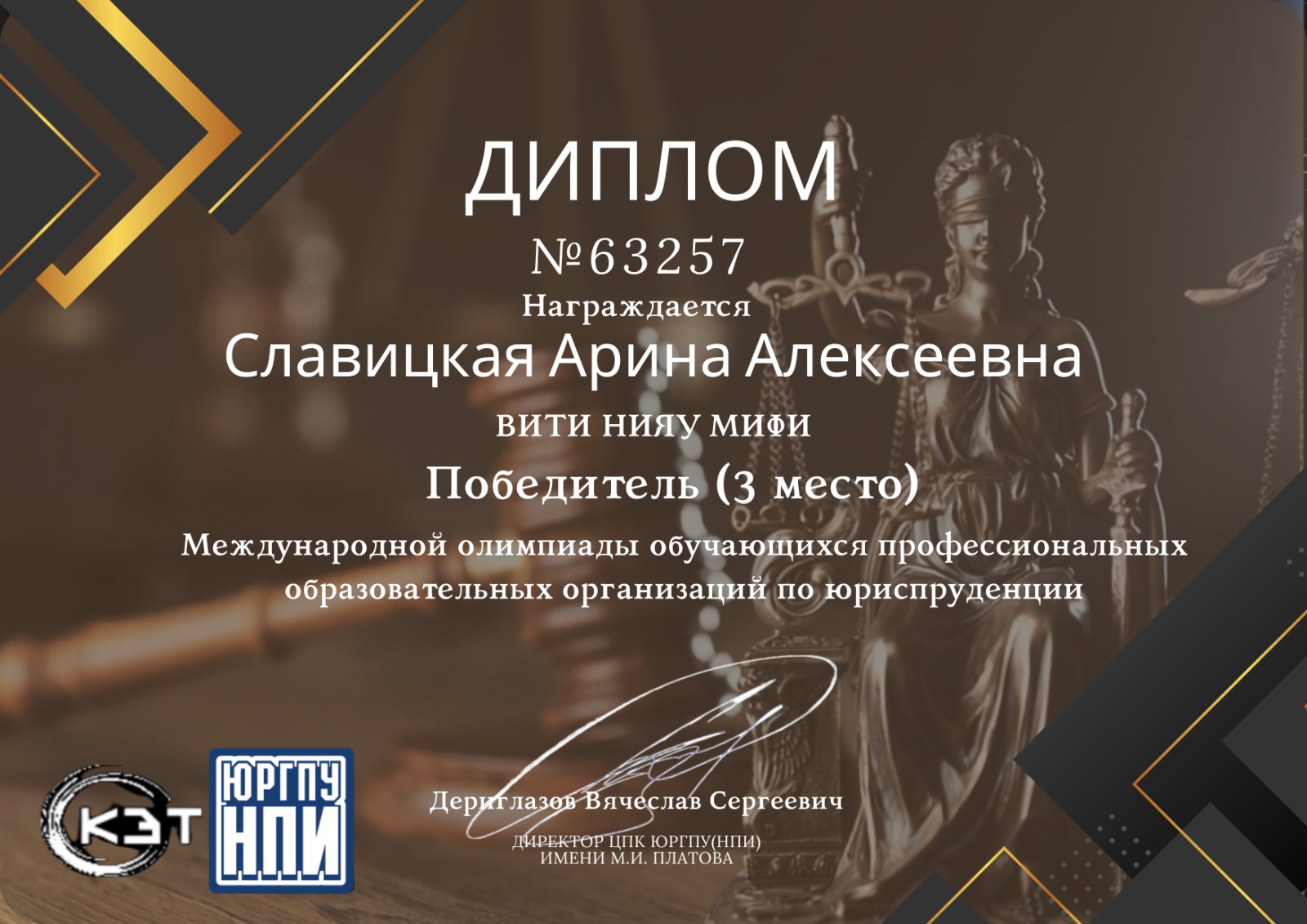 Студенты 3 курса техникума ВИТИ НИЯУ МИФИ специальности «Право и организация социального обеспечения» приняли участие в Международной олимпиаде обучающихся образовательных организаций по юриспруденции, которая проводилась на базе Южно-Российского государственного университета (НПИ) имени М.И. Платова.
