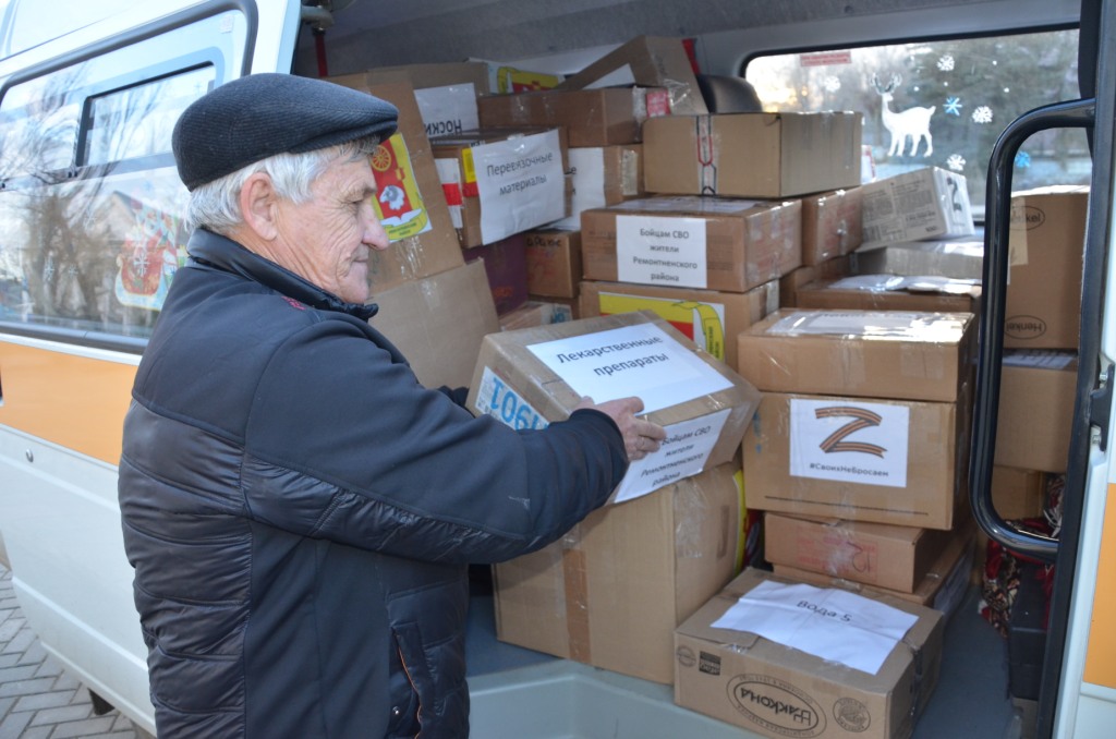 В сюжете на долю секунды появилось изображение коробки с надписью «Бойцам СВО жители Ремонтненского района». Коробка в числе прочих была отправлена в областной волонтерский центр перед новым годом. Отрадно, что гуманитарная помощь, собранная через Общественный Совет доходит по назначению.
