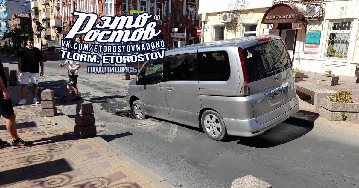 На Газетном в Ростове микроавтобус провалился в яму