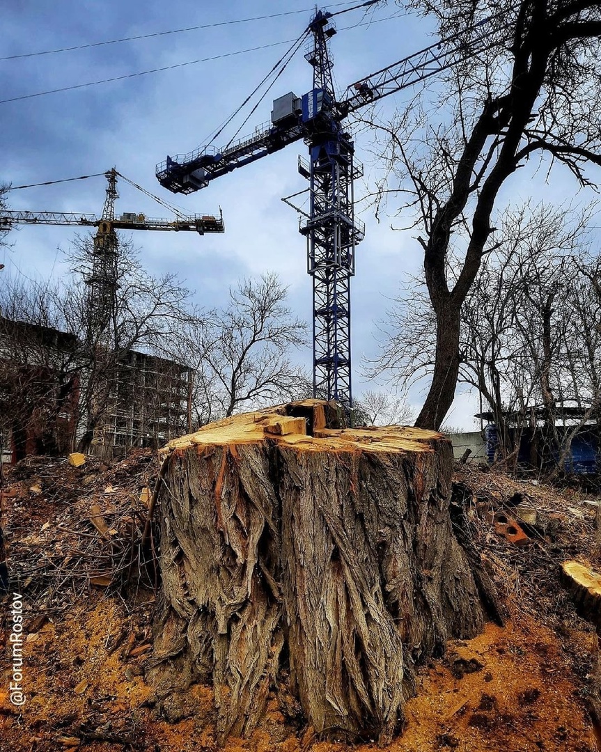 В группе ростовского форума в Инстаграме кто-то выложил фото, которое является основным к этому материалу – «железные деревья» вытесняют настоящие, растут высотки. Человейники. Для кого? И удобно ли в них будет человекам?