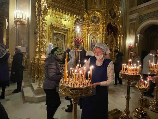 Все желающие могут поставить свечу и приложиться к иконе. Ее обрабатывают дезинфицирующим средством после каждого человека, поэтому можно не беспокоиться о безопасности.
