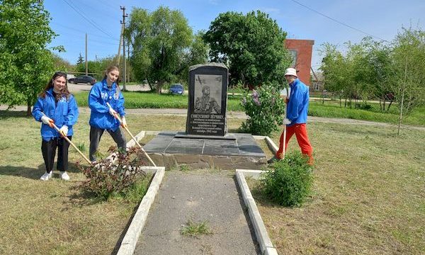 15 юношей и девушек сегодня вместе с работниками «Чистой станицы» побывали на старом городском кладбище, где оказали помощь в уборке захоронения солдат Второй Мировой. Затем, работа была продолжена в парке десантников.
