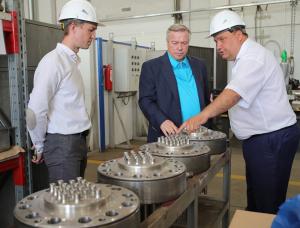 Следующий пункт посещения – завод «Атомспецсервис». Предприятие с 2004 года специализируется на выпуске теплообменного и емкостного оборудования, оборудования для локализации аварий, а также – по перегрузке ядерного топлива. В приоритете – конструирование и изготовление оборудования для переработки и утилизации радиоактивных отходов. За первый квартал текущего года темпы роста производства на «Атомспецсервисе» составили 137%. Взаимодействие с Фондом развития промышленности позволило «Атомспецсервису» построить новый корпус, модернизировать парк оборудования и освоить технологию производства витых теплообменных поверхностей. Витые теплообменники – составная часть комбинированного аппарата по сжижению газа, разработанного и запатентованного на Новотэке и применяющегося на «Ямал-СПГ».