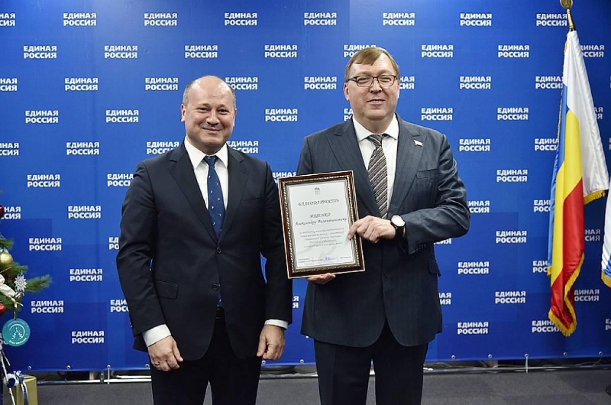 Председатель Законодательного Собрания Ростовской области, секретарь регионального отделения «Единой России» Александр Ищенко удостоен Благодарности Председателя партии Дмитрия Медведева.