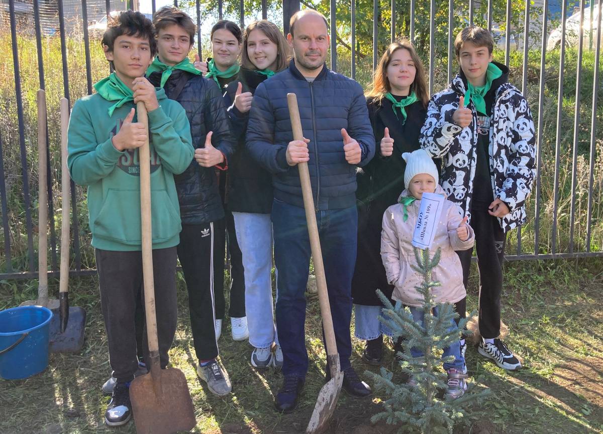Парламентарий и школьники Первомайского района посадили молодые деревья и цветы.