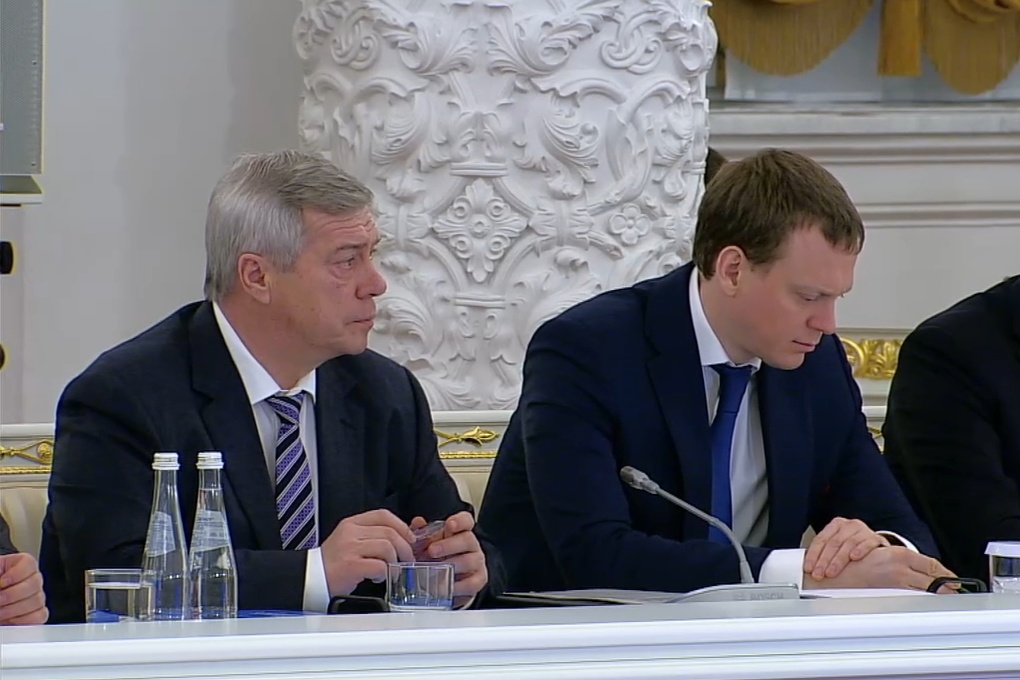 Сергей Петров ИА «ДОН 24» # Политика #Екатерина Стенякина #Законодательное Собрание Ростовской области #Виктор Водолацкий #Госдума #рейтинг Поделиться: Донской губернатор принял участие в заседании Госсовета 23.12.2022 Фото: donland.ru ©Ростовская область, 23 декабря 2022. DON24.RU. Губернатор Ростовской области Василий Голубев принял участие в заседании Госсовета РФ, которое прошло в Кремле под председательством президента Владимира Путина.