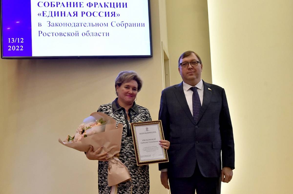 На собрании фракции «Единая Россия» спикер донского парламента Александр Ищенко вручил депутатам Законодательного Собрания благодарности высшего руководства партии «Единая Россия».