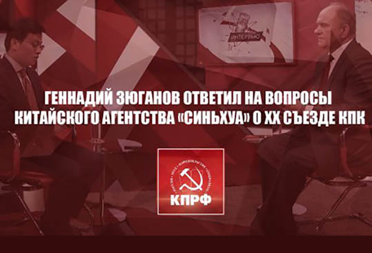 Председатель ЦК КПРФ в интервью китайскому агентству «Синьхуа» дал оценку прошедшему XX съезду Коммунистической партии Китая (КПК).