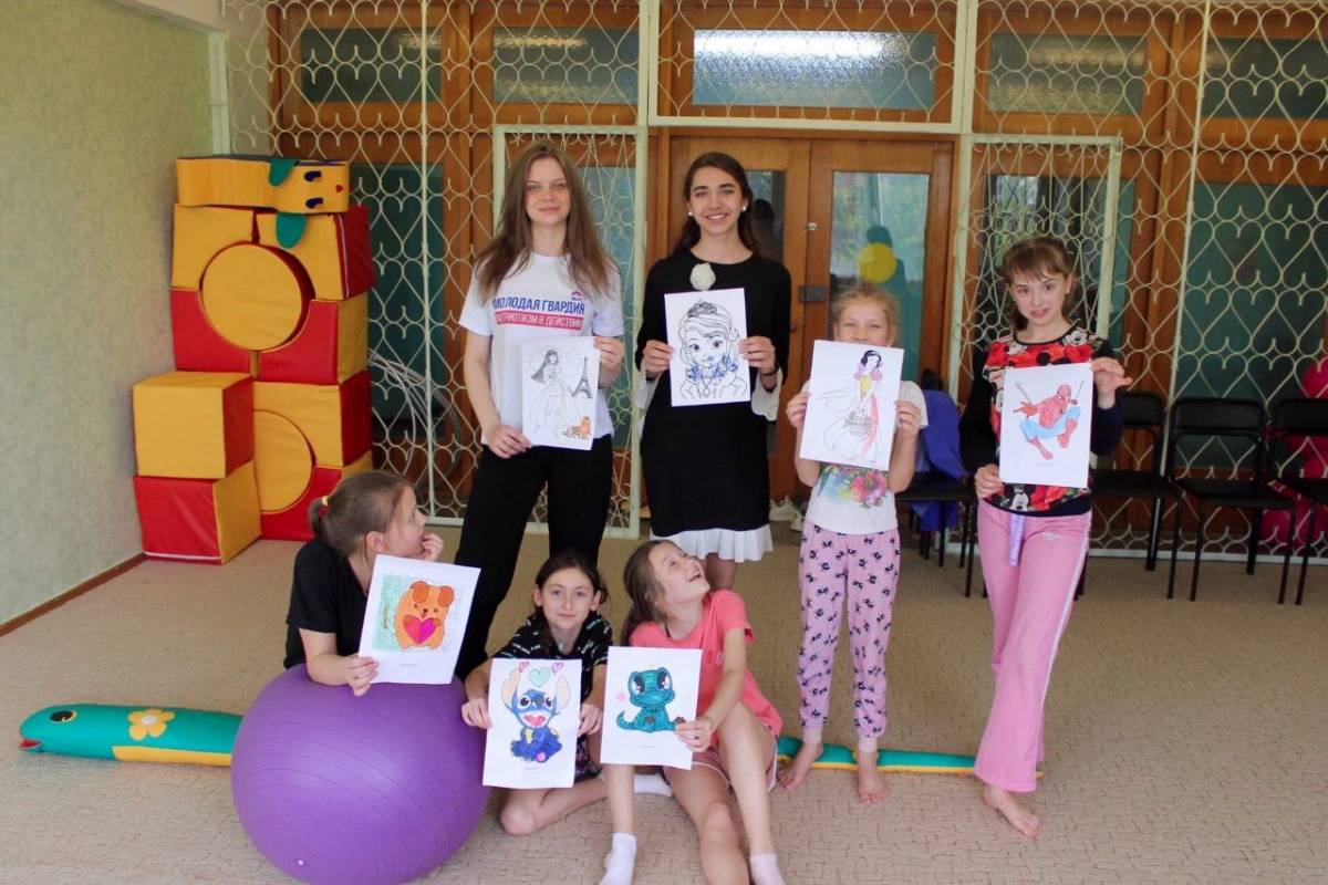 Дети разукрашивали раскраски, вместе с волонтерами готовили выступления и разгадывали загадки.