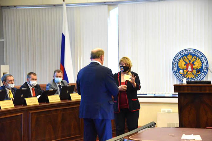 Но в отличие от сложившейся традиции, как это было, например, на выборах депутатов Государственной Думы ФС РФ восьмого созыва, когда ЦИК РФ зарегистрировав партийный список Коммунистической партии Российской Федерации 24 июля 2021 г., непосредственно после голосования членов комиссии о регистрации списка, сразу же вручило кандидатам надлежащим образом оформленные удостоверения. При том, что их необходимо было изготовить почти три сотни.