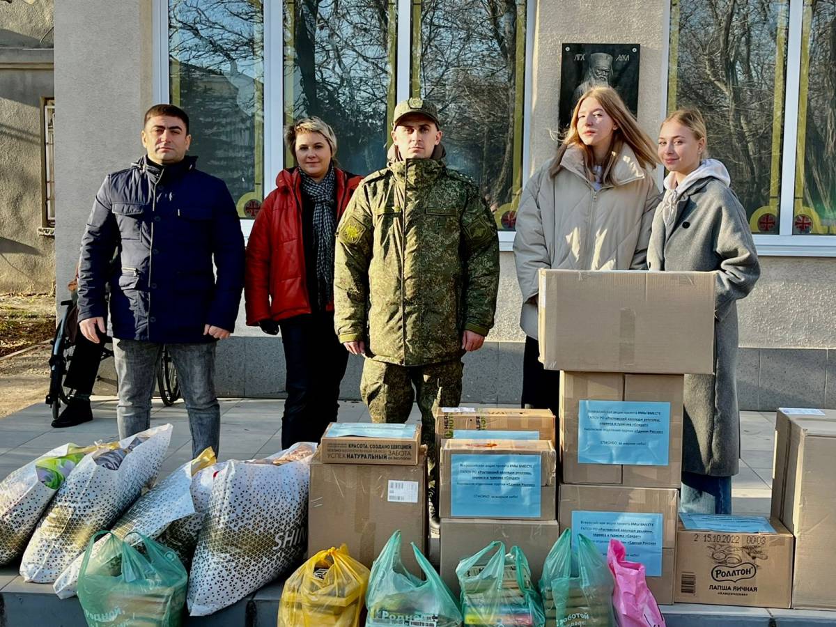 Доставку организовали преподаватели и студенты колледжа «Сократ», секретарь Кировского местного отделения «Единой России», глава Администрации Кировского района донской столицы Наталия Симаченко, общественный деятель Станислав Сабуров, члены местного политсовета партии и сотрудники администрации Кировского района. Добавим, в доставке участвовали студентки Анастасия и Елизавета, чьи родные сегодня выполняют боевые задачи в специальной военной операции, поэтому, по их признанию, для девушек такая акция стала особенно важной.